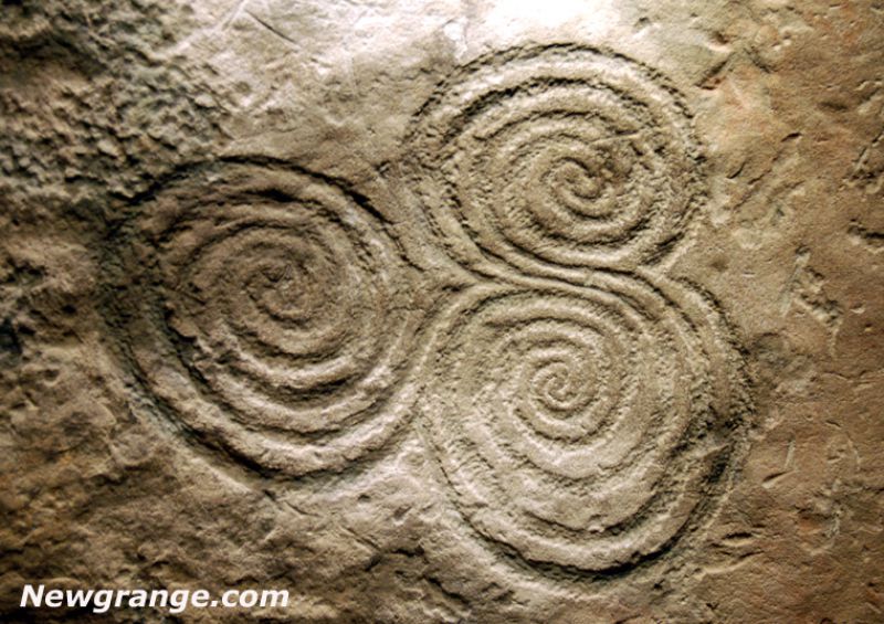 A espiral tripla mais conhecida e propagada no mundo, está em uma rocha de Newgrange, um túmulo megalítico pré-histórico, localizado no Condado de Meath, na Irlanda (Figura 3) (2). Trata-se de um dos Sítios Arqueológicos mais famosos do mundo e também é um Patrimônio Mundial da UNESCO (3).