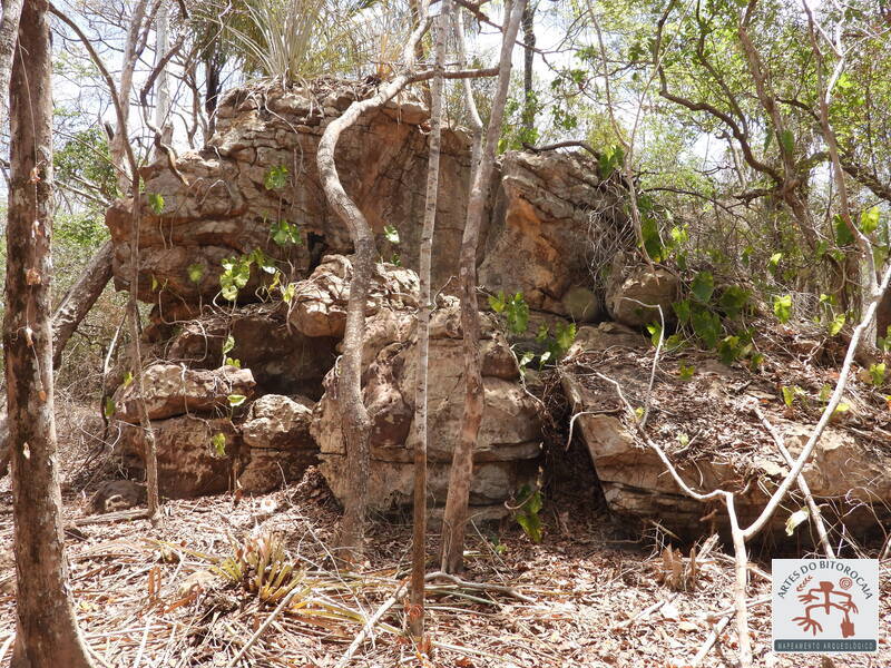 Bloco de pedra isolado, na margem de uma estrada carroçável, próximo à localidade Vila Nova, zona rural de Caxingó. A pedra apresenta alguns vestígios de pinturas rupestres, destaque para uma forma de pé de cabeça pra baixo. Ocorrem outras pinturas bastante deterioradas. O entorno do bloco de pedra estava desmatado. Visita em outubro de 2025.